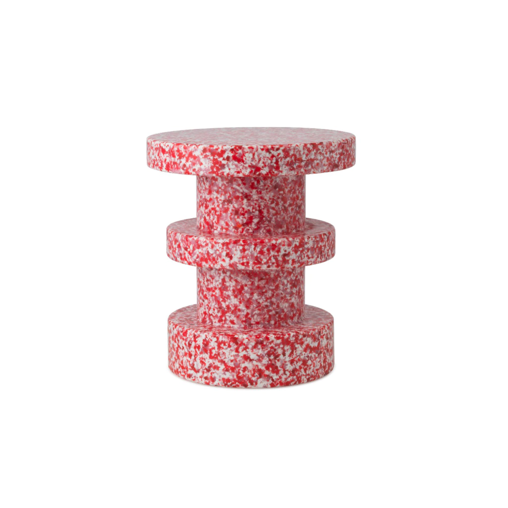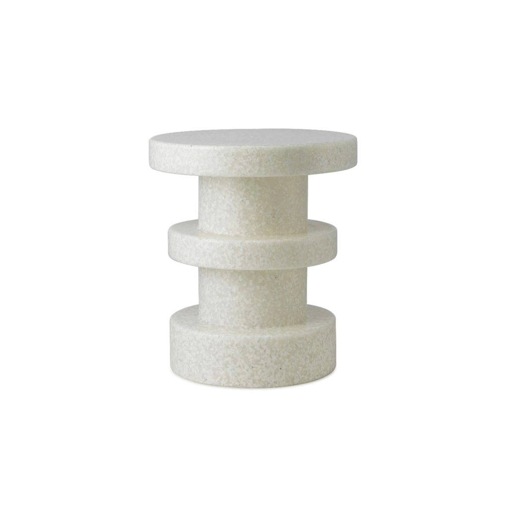 La superficie pixelada está compuesta por pequeños fragmentos de descartes plásticos industriales y domésticos 100% reciclados. Bit puede ser utilizado como mesa de arrime para una lámpara o un asiento improvisado para un invitado. El taburete Bit es apto tanto para ambientes interiores como para exteriores, ya que resiste temperaturas desde -10°C hasta 50°C. Bit es un taburete estético, placentero y versátil, lo que hace posible encontrarle múltiples usos en el hogar. Inspirado en cortes limpios y formas que evocan columnas y monolitos, este taburete diseñado por Simon Legald se vuelve tanto novedoso como multifuncional.
